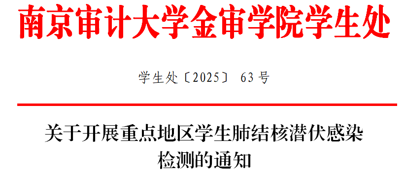 我校将于10月14日(周二)12:00在C东101教室开展结核菌素皮肤试验(PPD)筛查,请通知来自以上7个重点地区的学生(名单见《重点地区肺结核潜伏感染检测名单》)携带手机和黑色中性笔准时到场参加检测。本次检测由南京市栖霞医院负责实施。