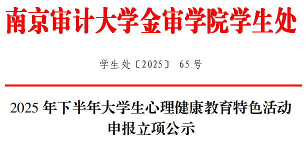 (二)公示期限。2025 年 10 月 20 日 —10 月 26 日(共 7 日)。(三)异议处理。公示期间,如对立项结果有异议,请以书面形式(需注明异议人姓名、单位、联系方式及具体异议理由)向校心理健康教育与指导中心反映,联系电话:025-85780087。