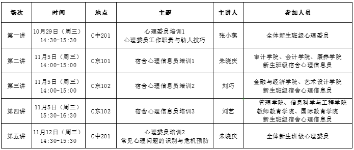 1. 认真组织。由于心理健康教育工作专业性强,请各二级学院高度重视,积极督促心理委员和宿舍心理信息员按时参加培训。