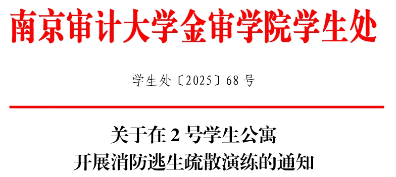 为贯彻落实江苏省教育厅《关于开展2025年消防宣传月活动的通知》精神,进一步强化消防安全管理,全面提升全员消防应急处置水平和逃生疏散能力,筑牢校园安全防线,学校将于11月5日组织2号公寓学生开展消防逃生疏散演练。现将相关工作布置如下: