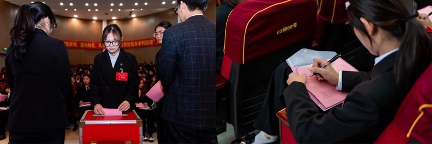 在正式会议中,各选举单位出席学代会的正式代表共计124名,根据大会选举办法进行了无记名投票,选举产生了丁婉彤(女)等13名同学为南京审计大学金审学院第八届学生委员会委员,朱薪米(女)等5名同学当选为南京审计大学金审学院第八届学生会主席团。