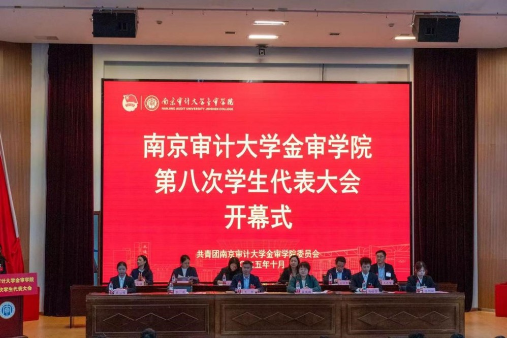 南京审计大学金审学院第八次学生代表大会于2025年10月29日下午在学校报告厅顺利召开。学校党委书记王军,党委委员、校长助理孟琪璐出席开幕式,各二级学院党总支书记参加开幕式,会议由团委书记李莉主持。本次大会选举产生第八届学生委员会委员和学生会主席团。