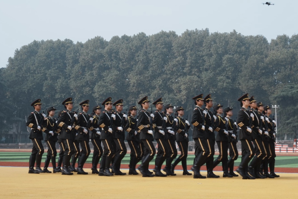 为展示驻宁高校、部队国旗护卫队风采,增强国防意识,促进交流合作,2025 年 11 月 1日, 3家军队单位和6所地方高校国旗护卫队汇聚陆军工程大学海福巷校区,擎旗向前,展示风采。南京审计大学金审学院队员们身着戎装、肩扛旗帜,以步履铿锵的队列、标准挺拔的擎旗姿态,呈现了一场兼具国防教育意义与仪式美感的国旗护卫队展示交流活动。