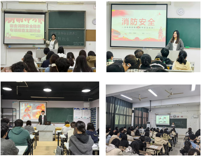 11月3-4日,各班级同步召开消防安全主题班会,将理论教育作为安全防护的“第一道关卡”。各班辅导员老师或者班委在班会上向同学们讲解消防安全的重要性,共同观看学生公寓火灾案例,着重强调宿舍使用违章电器、私自乱接电线、乱丢烟头、擅自使用酒精炉具等的危害,并提醒大家要保管好自己的宿舍财务和贵重物品,让同学们了解高校火灾事故发生的原因、了解消防逃生知识,增强同学们安全防范意识,做到防患于未然。