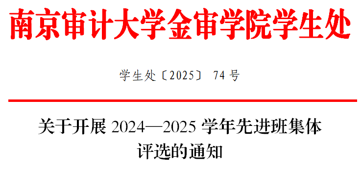 根据《南京审计大学金审学院优良班风班、先进班集体评选办法》有关规定,学校将开展2024--2025学年先进班集体评选工作,现将相关事宜通知如下: