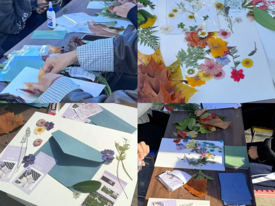 校心理协会举办的“秋日来信,户外拾秋”活动率先铺展暖意。活动中,同学们俯身捡拾斑斓秋叶,或拼作星芒藏进信笺,或衬着干花写下心绪,将课业疲惫揉进自然纹理。这场以“自然疗愈”为核心的活动,让落叶成为情绪的“温柔容器”,正如同学们所说:“捡秋的过程,也是捡起松弛与快乐的过程”。