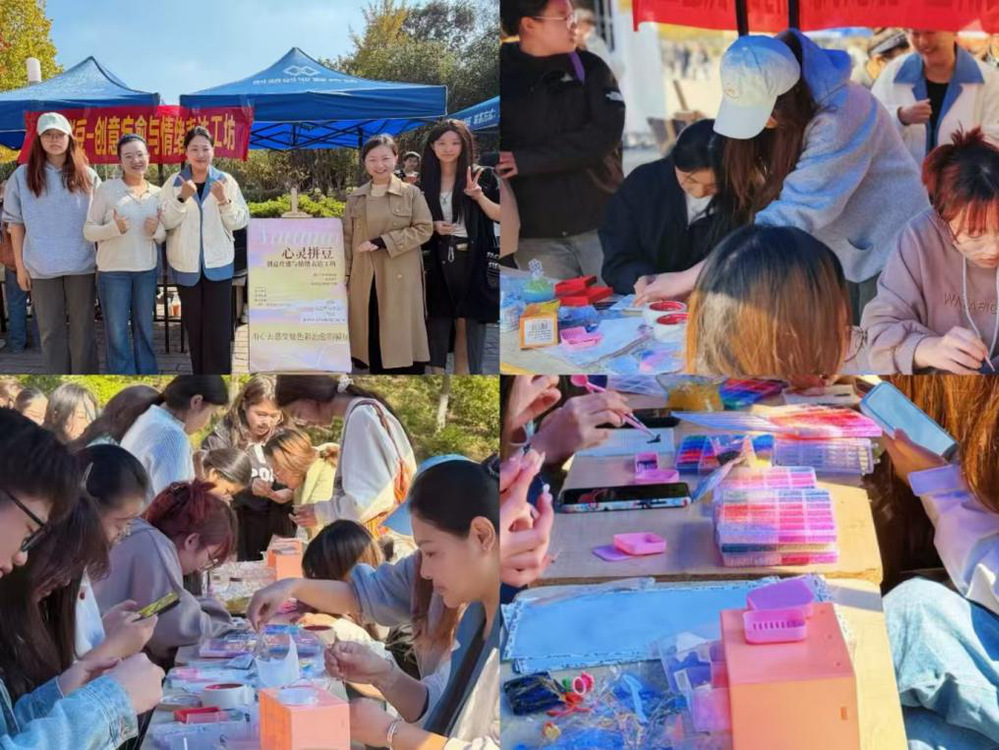 管理学院举办的“心灵拼豆”工作坊现场温馨热闹。同学们将彩豆拼凑出各式图案,把“说不出口”的情绪嵌进小巧色块,既体验了手工趣味,也完成了一场别样的心理疗愈,每一件作品都是独属自己的“治愈徽章”。