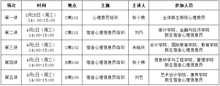 1. 认真组织。由于心理健康教育工作专业性强,请各学院高度重视,积极督促心理委员和宿舍心理信息员按时参加培训。