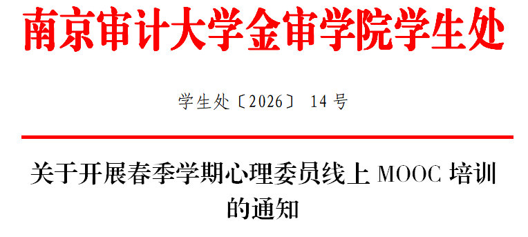 为提升心理委员的胜任力,促进心理委员丰富心理健康知识,掌握心理健康工作技能,增强常见心理问题应对能力,更好地发挥我校心理预警“四级网络”的作用,校心理健康教育与教育中心引进由中国心理学会心理学标准与服务研究委员会、高校心理委员协作组共同开发的心理委员MOOC培训课程,针对心理委员开展专题培训。现将相关事项通知如下: