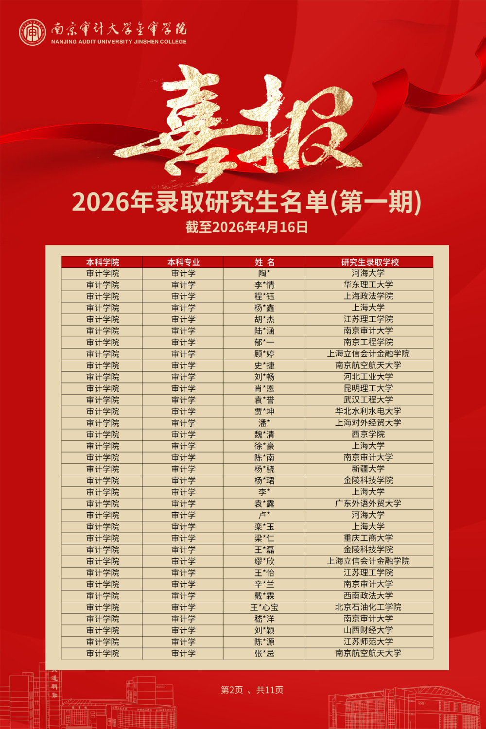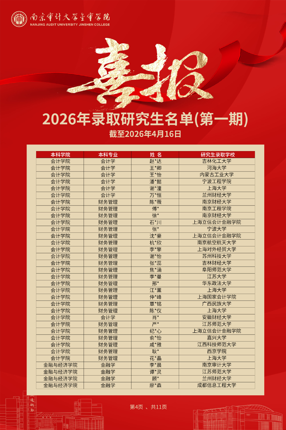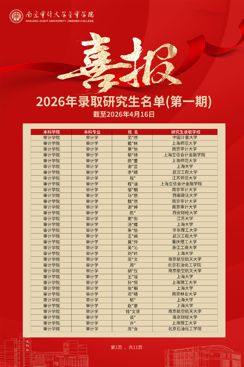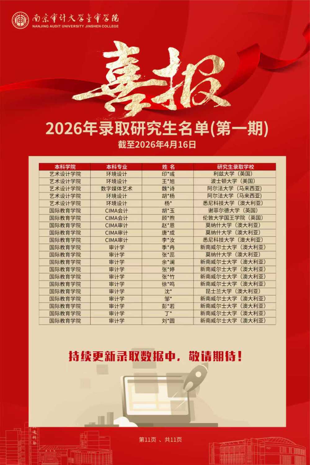 以下仅是我校截至2026年4月16日考研录取的第一期喜报,随着录取的进度,后续还会持续更新录取数据,敬请期待!