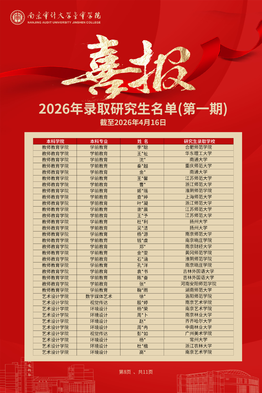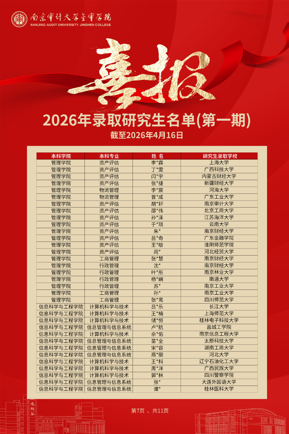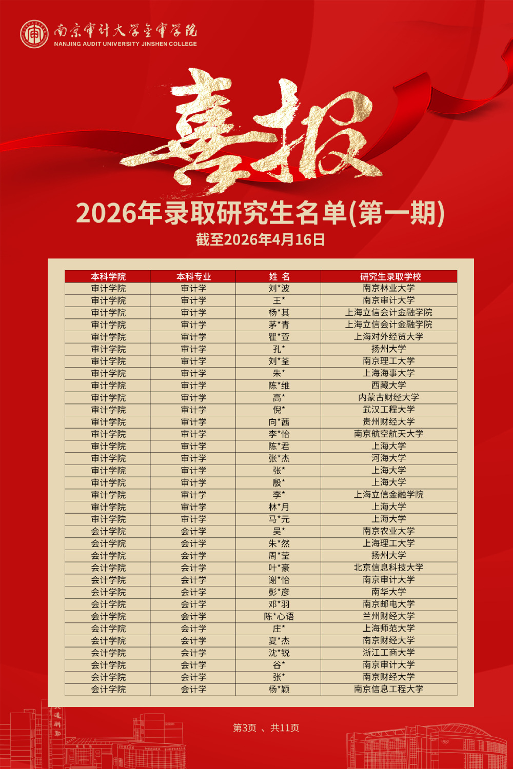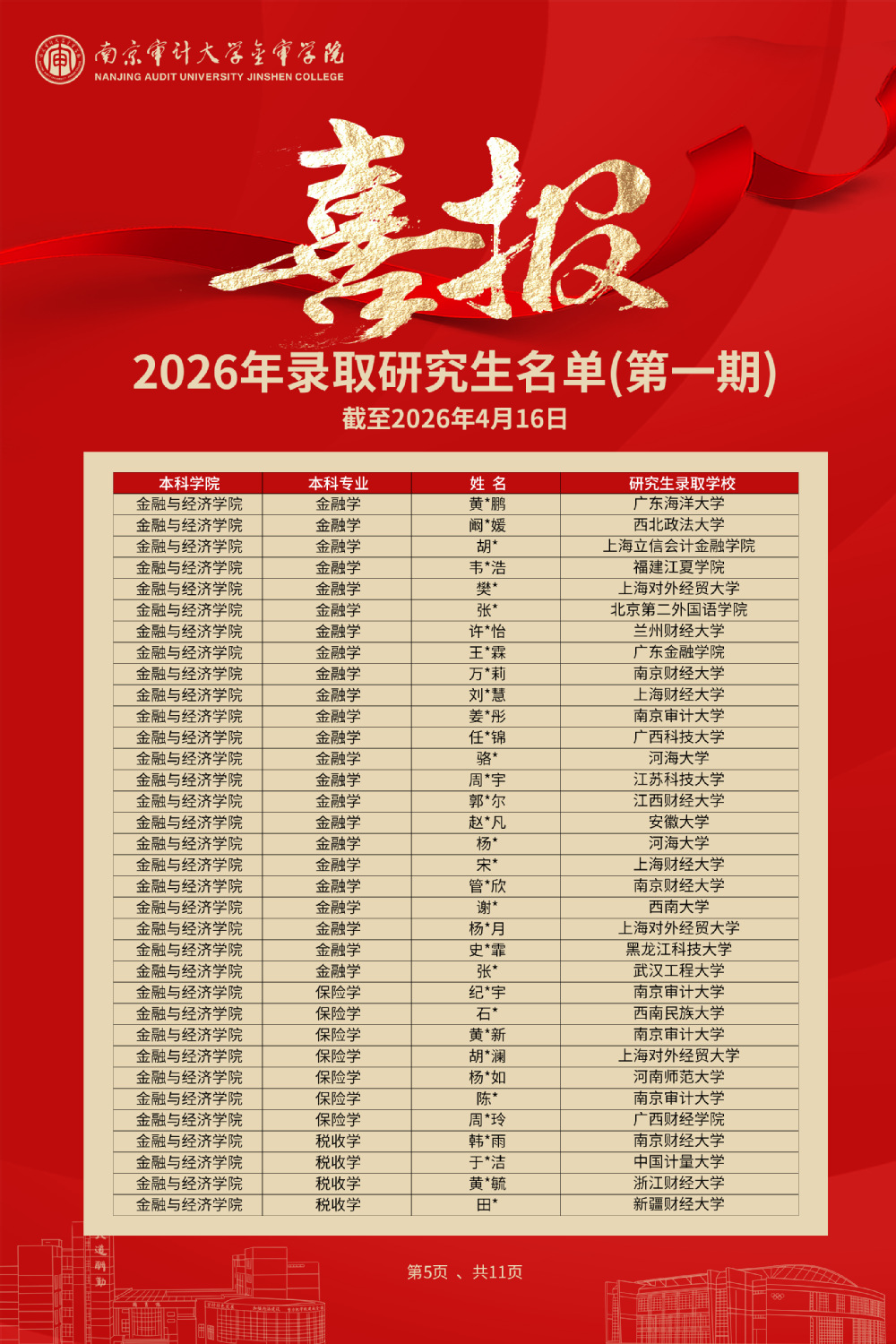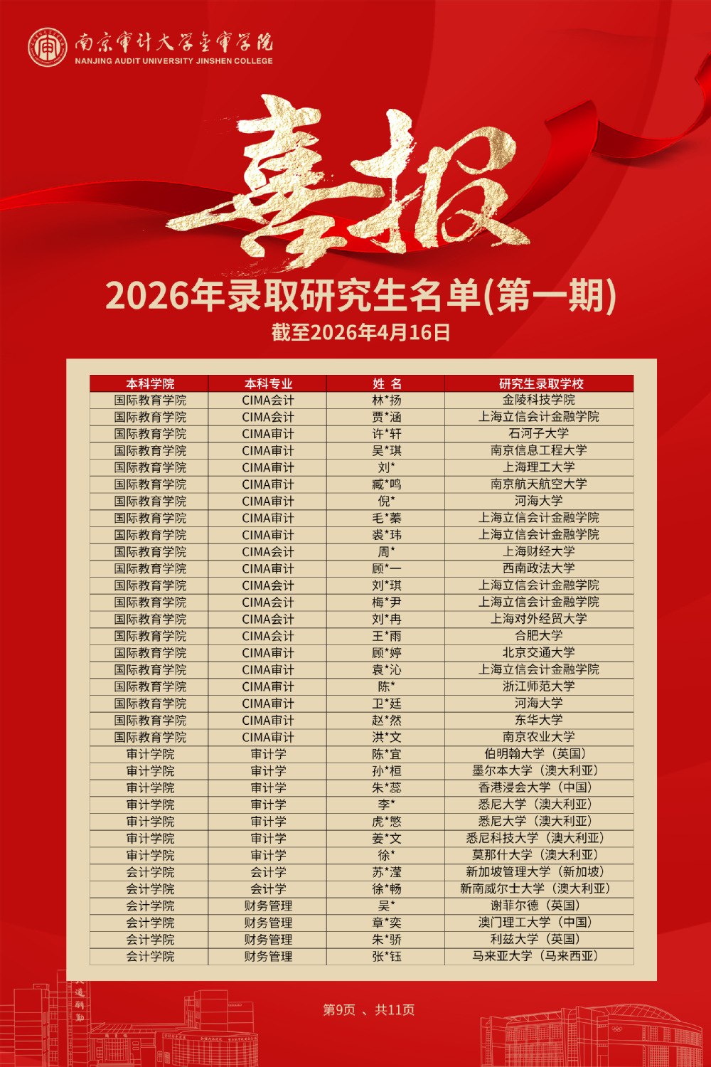 以下仅是我校截至2026年4月16日考研录取的第一期喜报,随着录取的进度,后续还会持续更新录取数据,敬请期待!